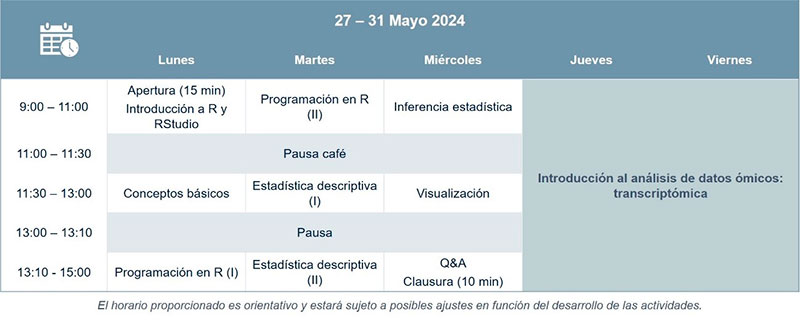 Este curso proporcionará las bases del lenguaje de programación R para el análisis de datos. Además, preparará a los participantes sin experiencia para el curso “Introducción al análisis de datos ómicos: transcriptómica” que se llevará a cabo los días siguientes.
