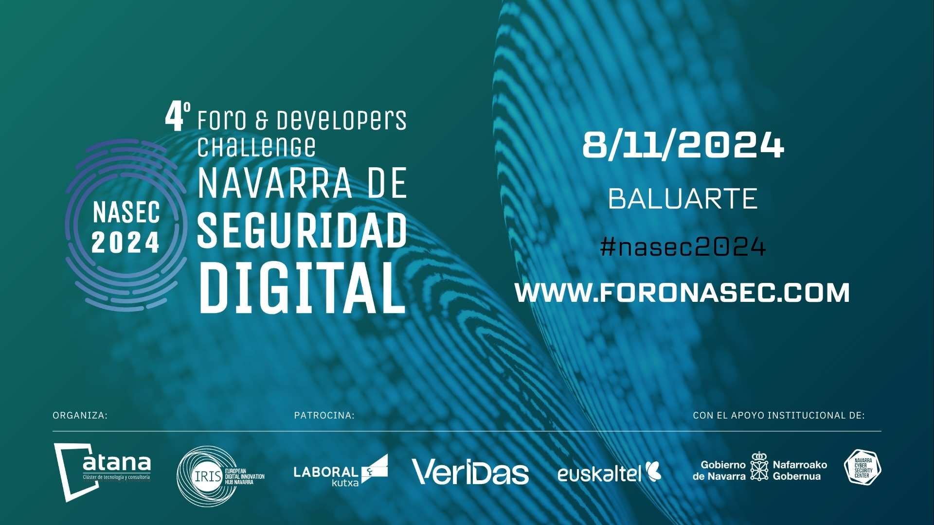 Un año más ATANA organiza, junto a IRIS Navarra, con el patrocinio de Laboral Kutxa, Veridas y Euskaltel, y el apoyo institucional del Gobierno de Navarra y Navarra Cybersecurity Center, el 4º Foro & Developers Challenge Navarra de Seguridad Digital, que tendrá lugar el viernes 8 de noviembre de 2024 en el Palacio de Congresos y Auditorio BALUARTE.