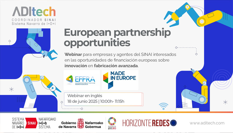 El próximo miércoles 18 de junio ADItech – a través de la iniciativa Horizonte Redes – organiza en colaboración con la asociación europea EFFRA (European Factories of the Future Research Association) un seminario online sobre las oportunidades de la convocatoria 2025 del partenariado Made in Europe.
