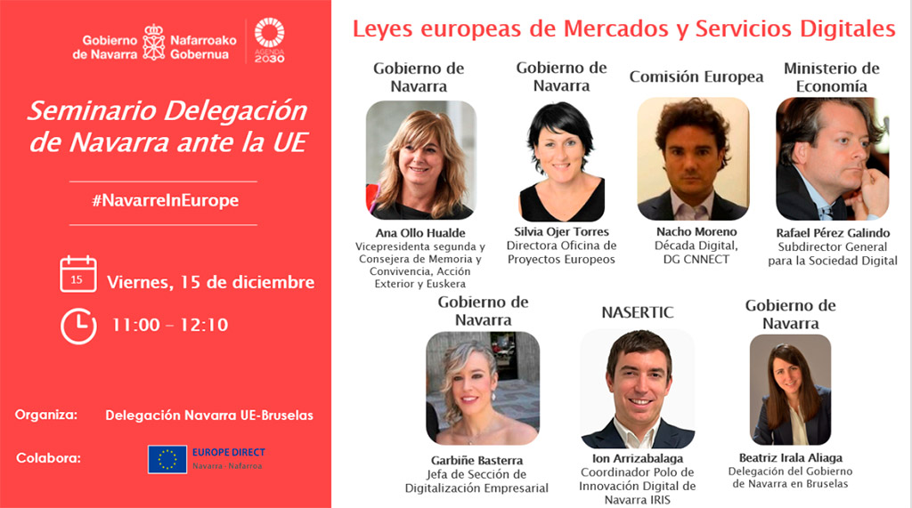 Con esta sesión, desde la Delegación queremos ofrecer información sobre las recientes leyes europeas sobre mercados y servicios digitales y las implicaciones para Navarra.