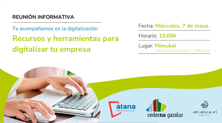 El próximo 7 de mayo, de la mano de Cederna Garalur y su proyecto Mimukai, ATANA impartirá una sesión informativa en el que expondrá recursos y herramientas para afrontar la digitalización, en todos sus ámbitos, de las empresas.