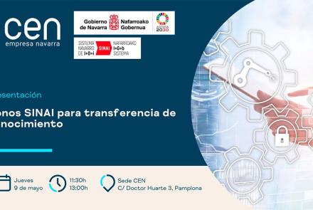 address clearfix 9May Bonos SINAI para transferencia del conocimiento 11:30 a 13:00 - CEN c/ Doctor Huarte, 3 Pamplona La Confederación Empresarial Navarra (CEN), colabora con el Gobierno de Navar
